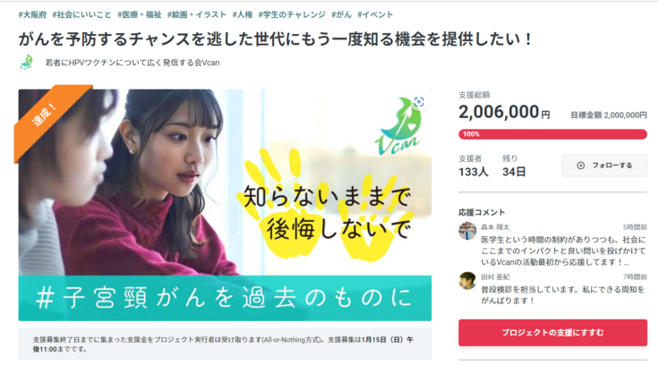 皆様のご支援を決して無駄にせぬよう、我々と同じ当事者世代にHPVワクチンの重要性について伝えていきます。一層気を引き締めて頑張ってまいります。