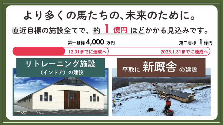 キャンペーンは一度時間を切りましたが、皆さんが一緒に拡散して、支援を呼びかけてくださることは大きな力になっています。この冬から、来年の秋までにかけて、牧場を完成形へ目指して進んでいくためには、本当に大きな資金が必要です。