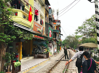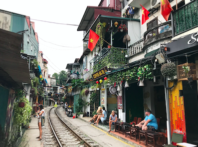 これらのカフェに入る人しか、線路に入ってはいけないらしい。