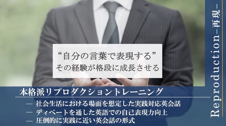 自分で考えて英語を話して、その都度講師の方々に修正してもらいながら英会話を練習していく。これがリプロダクショントレーニングです!