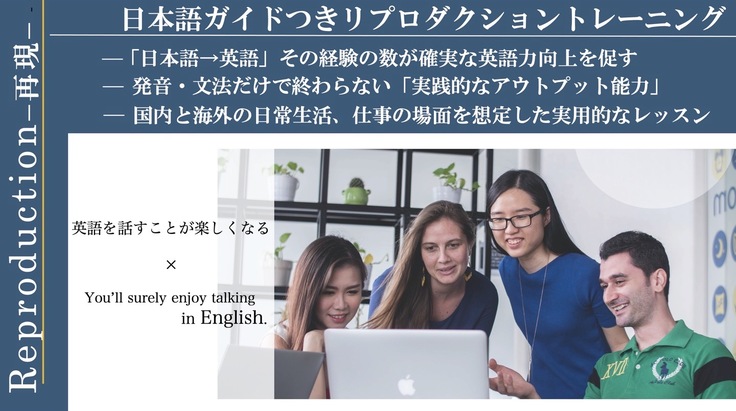 本事業では、これらの悩みを全て解決すべく、海外の英会話教室でよく行われている授業コンテンツである【リプロダクショントレーニング】(後述)を日本人向けに再構築しました!