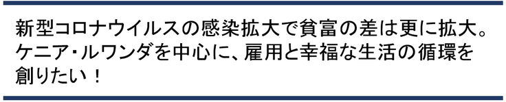 なぜなら、そこにはもう1つ我々が解決しなければならない大きな課題があり、そこに最大限の情熱を注いでいるからです。昨今、コロナウイルスにより世界中で大きな被害が出ています。この影響はもちろんアフリカにも広がっており、多くの人が職を失い、空腹のまま路上で寝ています。ある人は、自分の兄弟のために1日数十円を身を粉にして稼ぎ、ある人は、病気で両足が完全に腐っても治療することができず膝と手を使って移動しています。また、現在東アフリカでは職に就くことがかなり困難です。仕事はもちろん、アルバイトとして働くことすらかなり難しい状況です。働きたい人は会社にお金を払って面接等を申請するのですが、お金を払った後に「もう定員に達しているので雇えません」と言われ、お金だけ取られる例も少なくありません。さらに、英語がペラペラでかつとても運よく高級なレストランでウェイターとして働けても、30日休み無しで働いて月収6000円です。現地へ行くと、(国連の定めたSDGsの様に)未だに1日1.25ドル以下で働く人は沢山いると実感させられます。もしあなたの生まれる場所が少しズレていたら、、