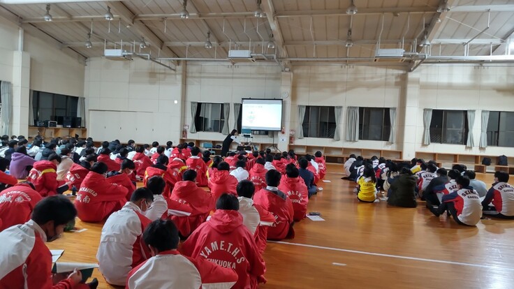 2023年は、引率顧問のご家族に協力をお願いして「アスリートの栄養学」をテーマに講演してもらいました。