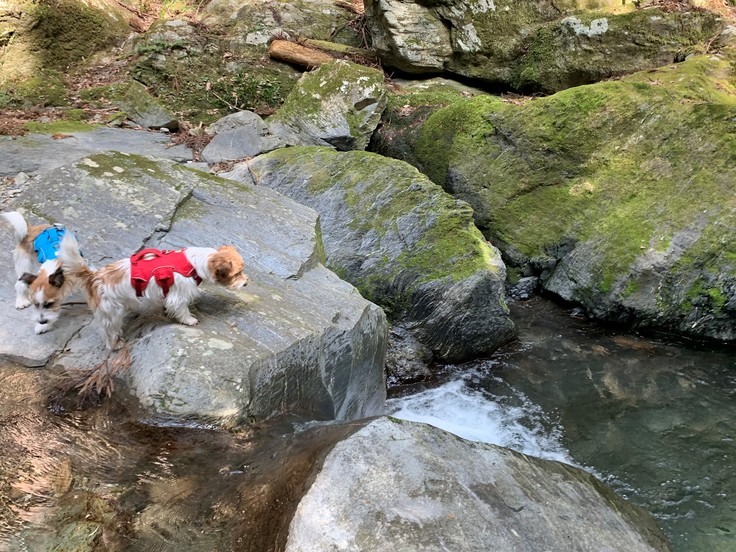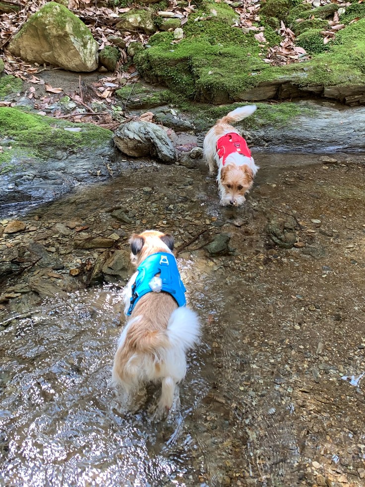 川あそびは夏からの提供の予定だけど、うちのワンズは一足早く川あそび体験中。まだちょっと冷たいね(^^♪