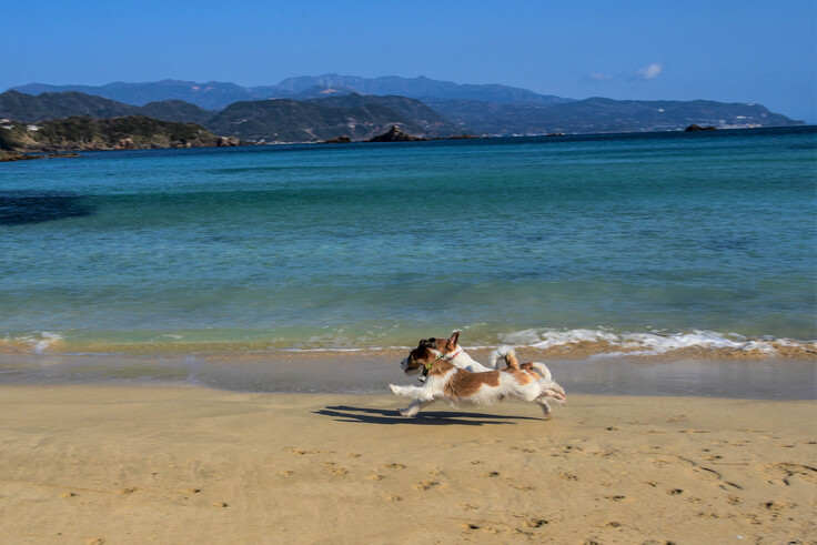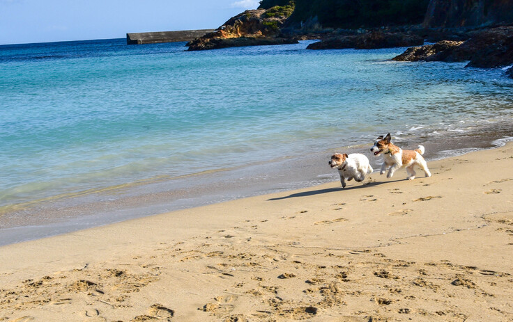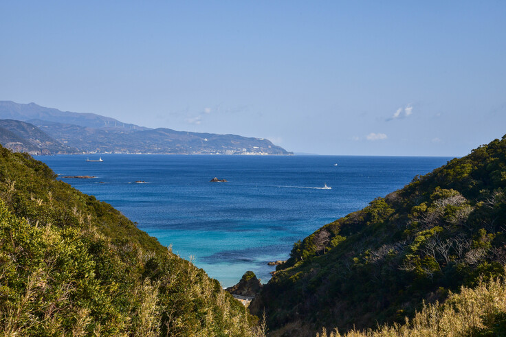 ※写真は2018年2月に訪れた際の九十浜の青い海とゲンキ・のんき