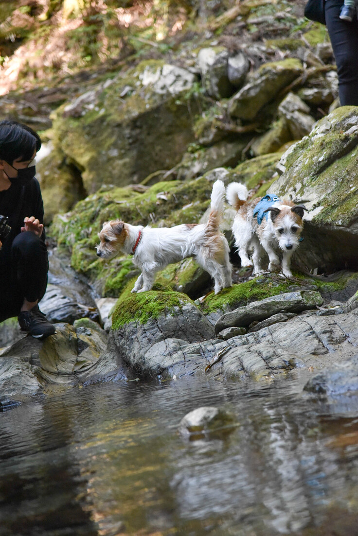 大好きな渓流。ゲンキは最期の残った力で楽しんでいるようでもあり、力をふりしぼっているようでもありました。ちょっと冷たい川にも足をつけ、体調が悪くなってから下がりっぱなしのしっぽが「ビンッ」とあがったような気がします。