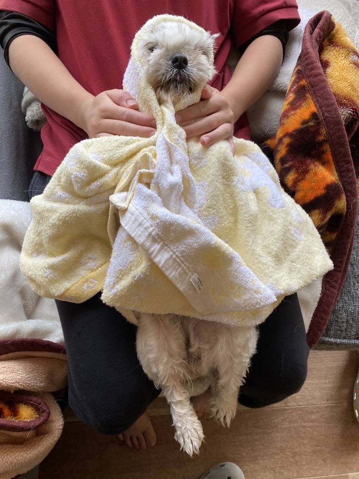 WishMeLuck史上最速での譲渡わんこでした。なので1ヶ月もない保護生活でしたが、なかなかのおもしろい性格で、印象的な思い出がたくさんあります。とっても陽気でマイペース。ひとつひとつの動きに癖があり、いつもみんなを笑顔にしてくれました。