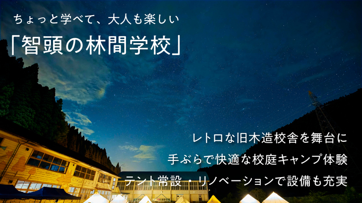 テント常設で手ぶらで快適 昨年のグランピングから設備も強化、旧木造校舎で知る、感じる、学ぶ「智頭の林間学校」を開催します!