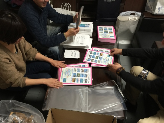 先週、プロジェクトスタートと同時に発注していた、カレンダーの増刷分、第1弾届いて、只今、地元の仲間と、<配布キット>作りをしてましたー!!!