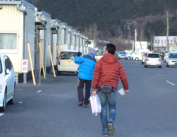 午後は、石巻市では一番に規模の大きい仮設住宅団地である開成地区の「仮設開成第11団地」を、地元の仲間たちと訪問し、第1弾目の配布を完了してきました!!