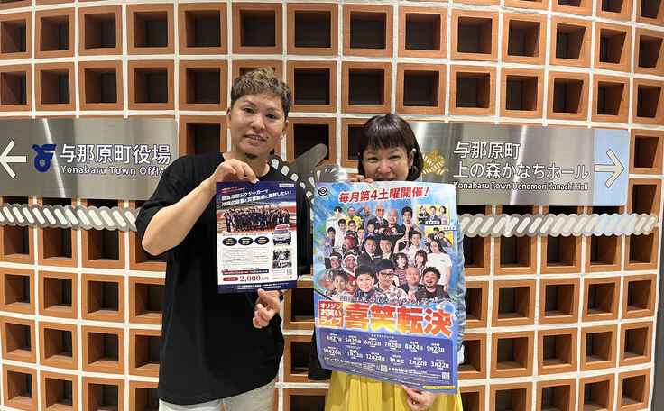 5月25(土)与那原町にある上の森かなちホールで、オリジンお笑いライブ“喜笑転決”が開催され、主催した芸能プロダクションのオリジンlil(リル)様のご協力で、本プロジェクトの告知をさせていただきました。