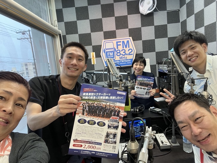 豊見城市のコミュニティラジオ局「FMとよみ」さんに救急科山内部長、立津看護師長、嘉手納救急救命士がお邪魔し、ラジオ番組に出演させていただきました!