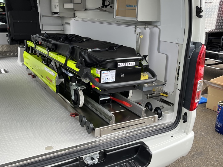 また、患者様が乗るストレッチャーは電動ストレッチャーを採用し、スムーズで患者様にストレスがかからないようにするとともに、実際にストレッチャーを操作する院内救急救命士の身体的負担も軽減できるようにしました。