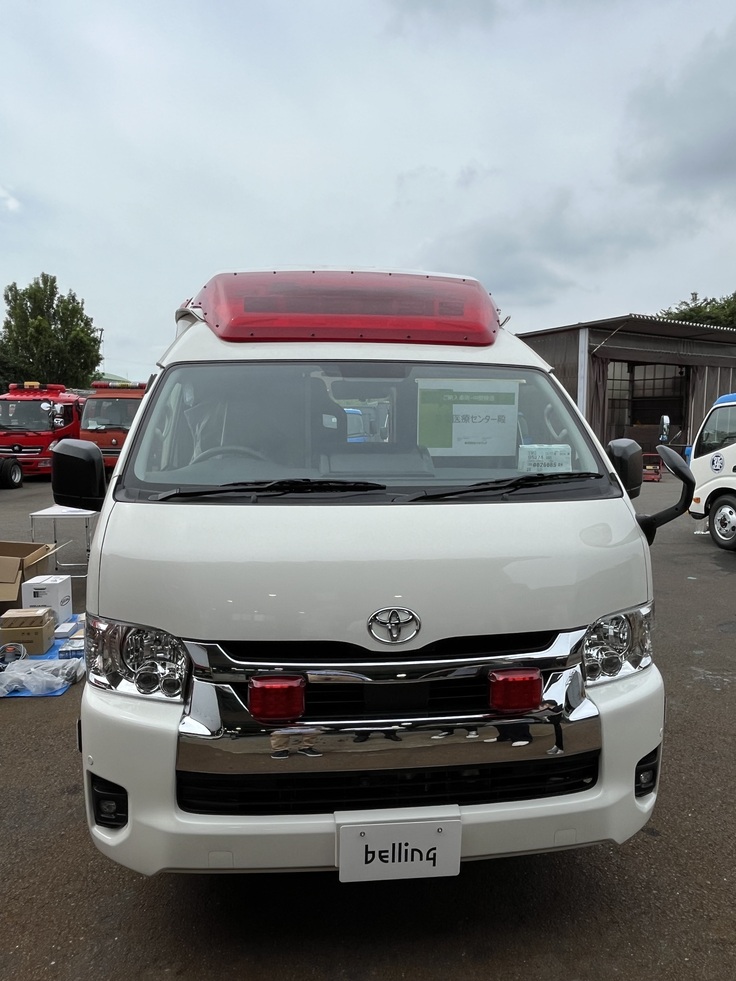 まだ塗装が施されていない真っ白な車体なので味気なく見えますが、塗装が施されると、現行のSUV型ドクターカーのデザインと調和した、一目で友愛医療センターの救急車と分かる車体になります。