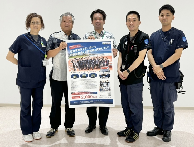 救急車型ドクターカー導入事業への激励とクラウドファンディングに対する支援金をいただきました。