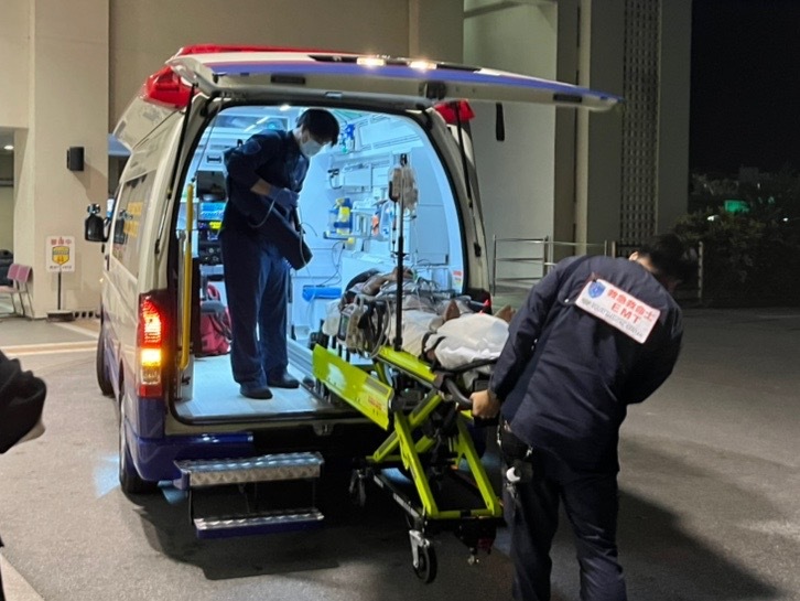 以前であれば所轄消防の救急車を要請して搬送していたような症例でしたが、今回は、みなさまのご支援で導入した救急車型ドクターカーで、医師、看護師、救急救命士同乗のもと、より安全に受け入れ先へ搬送することができました。