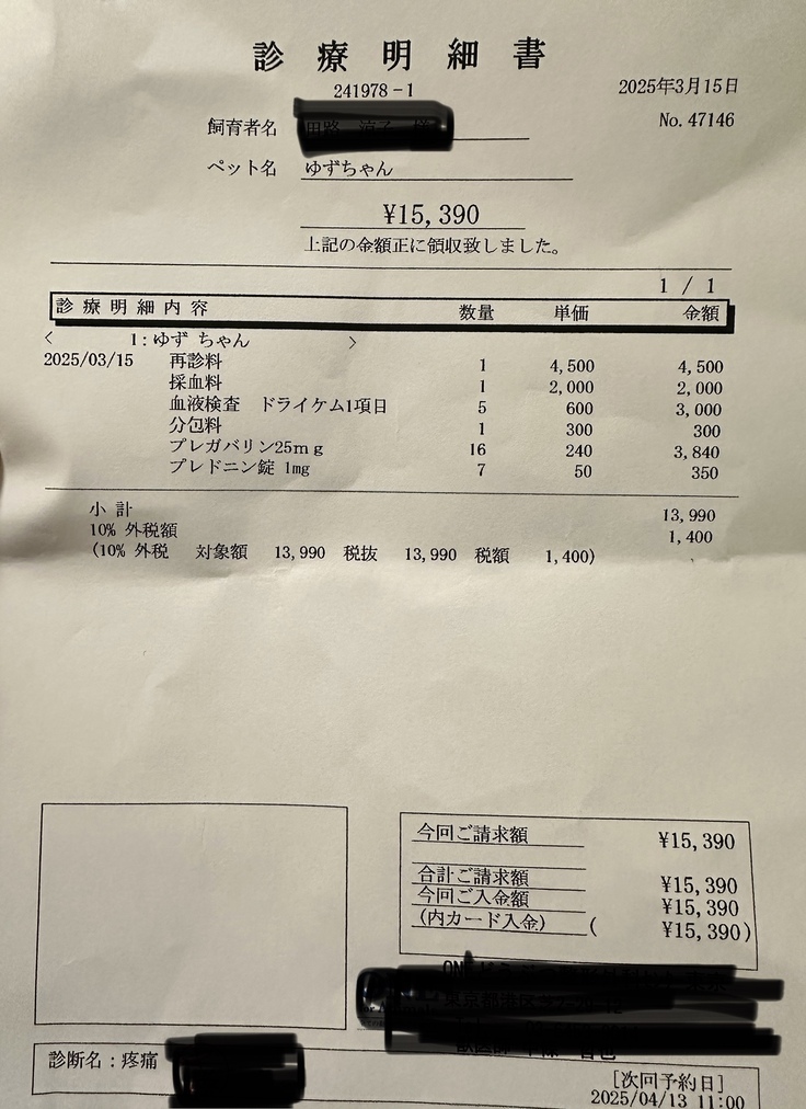 その代わりか副作用が出て当初2.6㎏だった体重が3.1㎏になってしまいました。