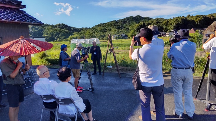 80年前の7月28日,柳井市伊陸に沖縄から呉軍港を攻撃に来たB-24ロンサムレディ号が墜落しました.同じ日,平郡島沖では駆逐艦梨が,米艦載機の激しい攻撃を受けて沈没,多くの人が亡くなりました.柳井で同じ日に起きた「海と山の悲劇」を歴史に残そうと銘板ができあがり,80年後の今日,除幕式が行われました.主催者のご配慮で,除幕式のあと,参加者にクラウドファンディングのチラシが配布されました.