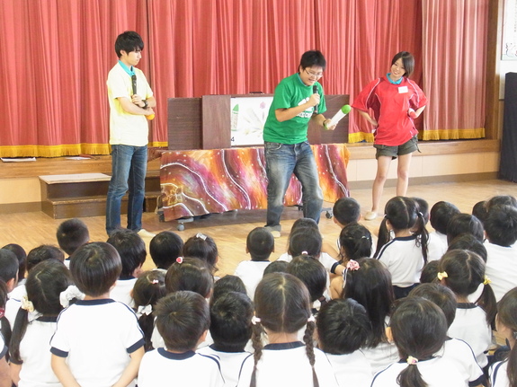 東日本大震災後、仙台にも出向き、幼稚園や保育園、キリスト教育児院などでたびたび上演しましたが、悲しくつらい、怖い体験をしたことで笑顔を失いかけていた幼い子供たちが目をキラキラさせ「僕、将来サッカー選手になる!」「私ケーキ屋さんになりたい!」「トリマーもいいな~」と楽しそうに話してくれました。私たちは涙が出るほど嬉しかった。