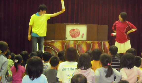 私たちの紙芝居は、読み聞かせるだけではなく、紙人形や小道具を使いながらの寸劇も織り込まれているので、会場はいつも大盛り上がり。子供たちは大きな声で、私たちの呼び掛けに答えてくれます。では、子供たちはどうしてこんなに喜んで反応してくれるのでしょうか……。