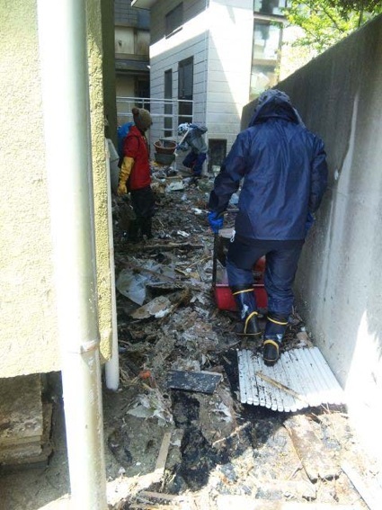 写真は、震災から2ヶ月後の石巻市沿岸部のお寺でボランティアをした時に撮影したもの。ヘドロがとても臭いし、重い。