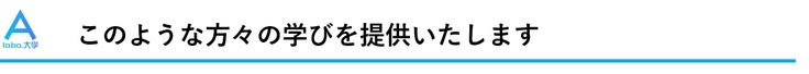 このような考え方に賛同する人々が集まり、A-labo.大学のプロジェクトを始めたのです。