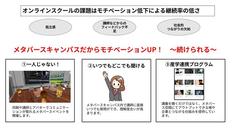 メタバースによる通学システムは、継続率の向上と解約率の低下に多くの利点をもたらします。