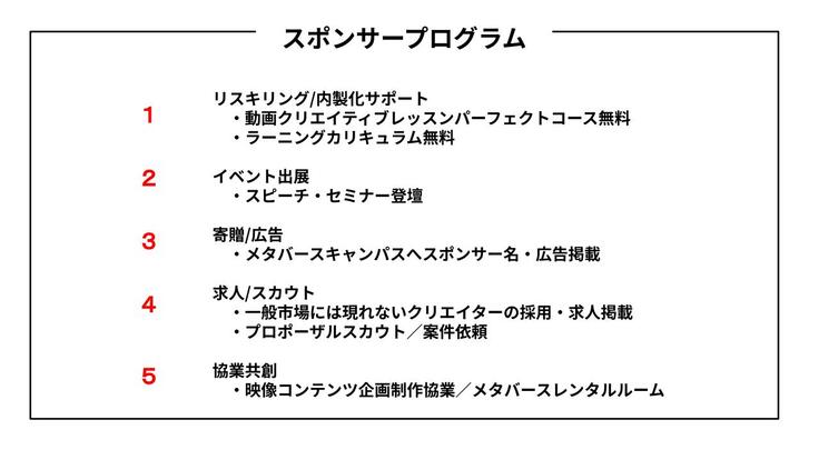 スポンサープログラムでは、5つのベネフィットを用意しております。