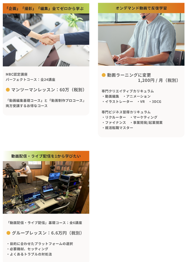 ①スタッフのリスキリングとして、レッスン受講/動画製作内製化サポート