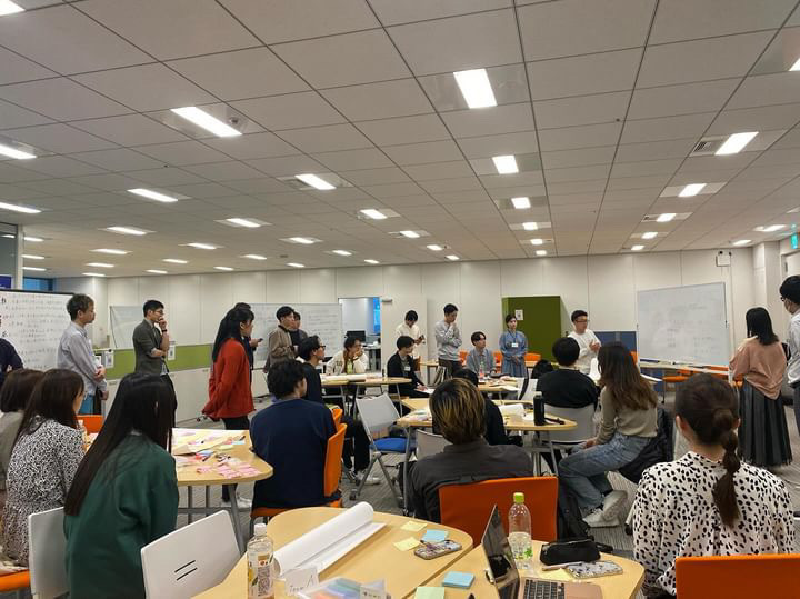 今回のイベントはそんなRe-Generationがロート製薬さんとコラボして行ったもので、話題の再生医療についてグループでディスカッションした後、2050年の社会でこの技術をどう生活に活かすかをグループごとに発表しました。医療や美容、食など多岐にわたって応用可能な再生医療技術について自分の専門に問わず多くの学生による議論が行われたので、万博までこの繋がりがどう生かされるのかとても楽しみです!