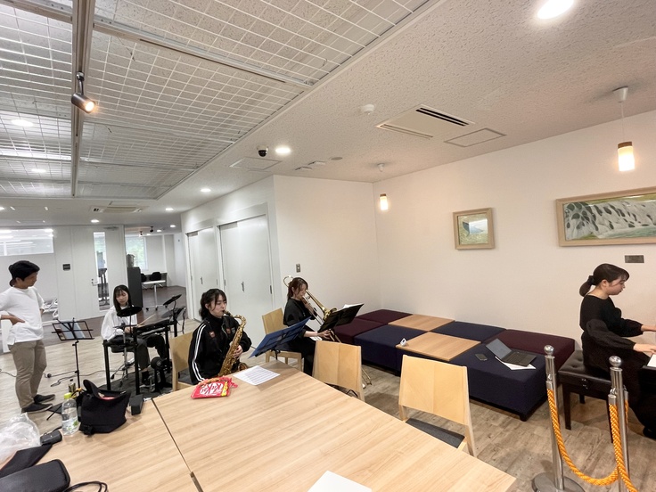 4月29日(月)、いちょう祭や道頓堀春フェスに向け、吹田キャンパスにて演奏練習を行いました。今後のイベントで演奏する「Ankaa」「Uni-Tunes」「この地球の続きを」「情熱大陸」「銀河鉄道999」を練習しました。ヘッドフォンを用いた新しい演奏形態を試したり、新しく演奏に加わったa-tuneメンバーと合わせたりしました。