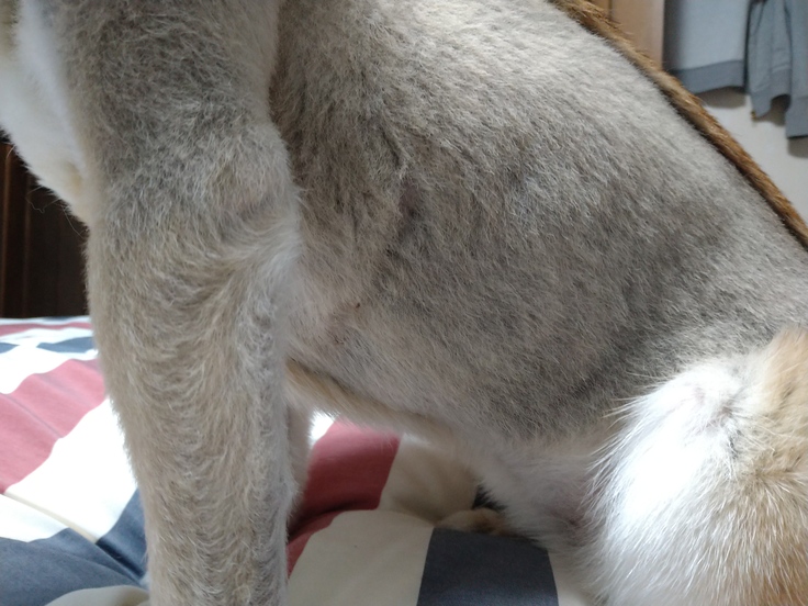 今のあんずはアンダーコートも伸びてきて傷口も目立たなくなっております。不思議です。ここから心臓が取り出されまた戻されて…今日もあんずはご飯を食べられています。
