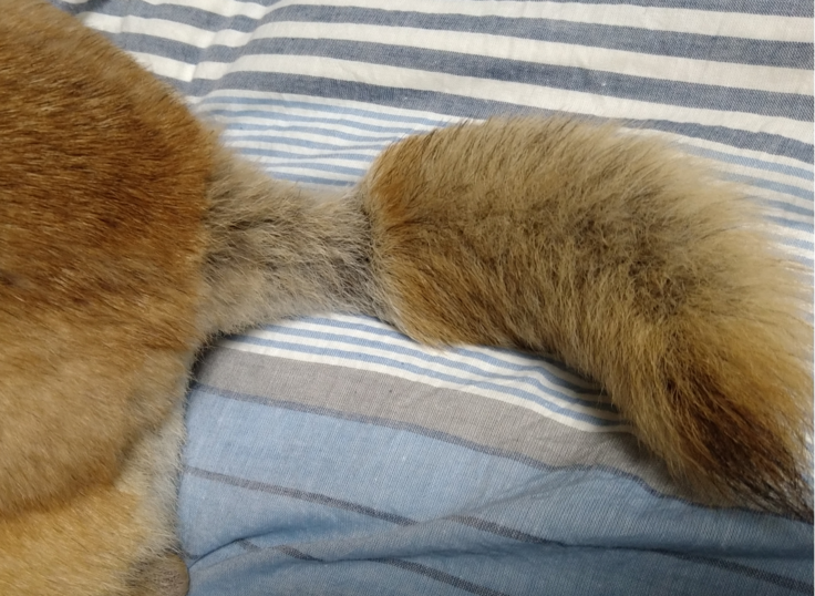 今お気に入りがこの尻尾。本人自慢の尻尾でしたけど笑えちゃうスタイルになっていました。今だから笑えちゃうのですが。