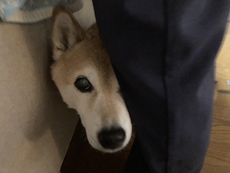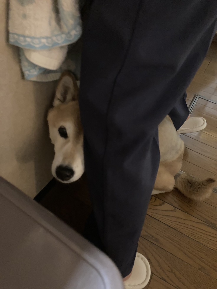 あんずのはしゃいだ後のパンティングの方が心配ですのに、『そんなことよりこの状況のあんずを助けて!』という顔です。