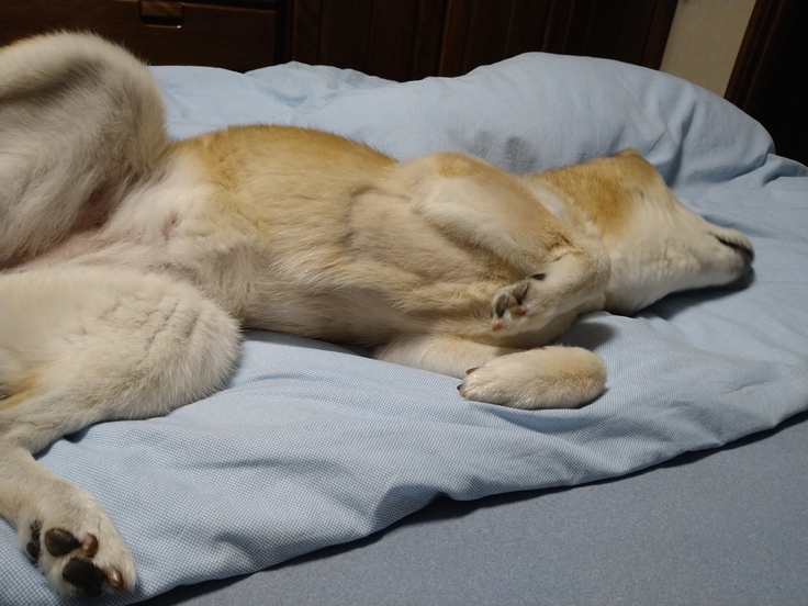 そしてこの寝相😳 暑いのか気持ちが良いのか…無防備な寝姿て失礼いたします。日中の雷疲れが出たのでしょうか。ゆっくり安心しておやすみください💤