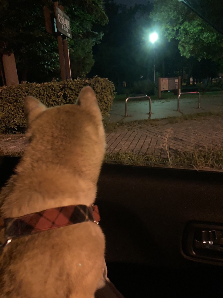 気分転換に夜ドライブに行きました。窓を開けると気持ちの良い風を顔に受けながら目がランランと楽しそうに顎を乗せて眺めていました。運動制限のストレスもあるだろうなと思う瞬間でした。日中の気温が下ってきましたらもう少しお外の空気を楽しみに出かけようか…あんず。