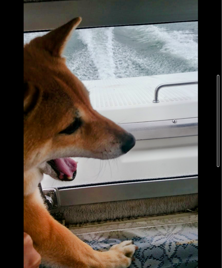 Xperiaが今日の思い出の写真を出してきました。孫達とモーターボートに乗った時の写真です。この時も「ィェーィ」といった感じですが、いつも出かけた先では楽しそうに過ごしておりました。いつ病に見舞われるかもしれないのは人も同じです。「動物はその一瞬々を生きているもの」と以前旭山動物園の園長さんが教えてくださいました。あんずは思い出写真を見ることは出来ませんが、一緒に過ごした年月は頭の中の引き出しに大切にしまわれていて欲しいです。病気に負けないように頑張っている今も大切な思い出になります。