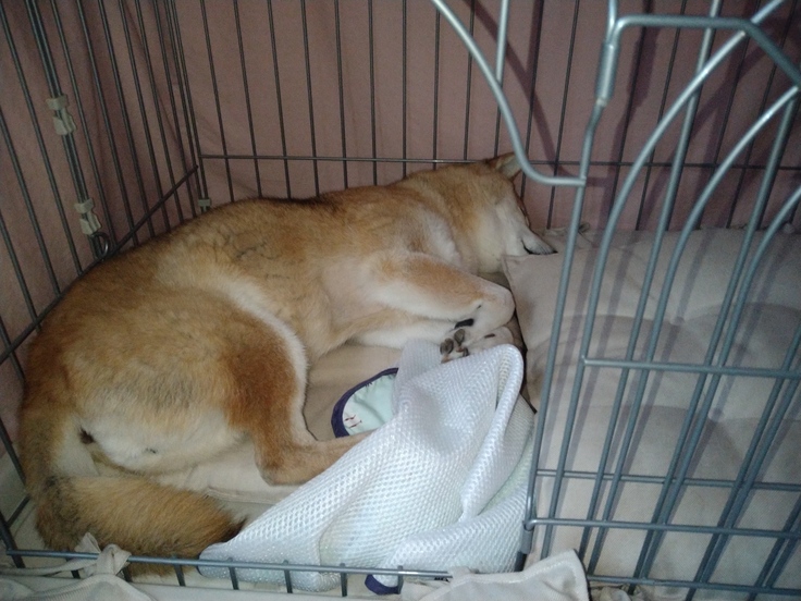 あんずは小さな頃から家の中ではフリーです。その時の気分で場所を選んで移動しては寝ていますが、ソファで寝る時間がほとんどでしたのに、術後は留守番中などは何故かハウスにこもって寝るようになりました。病気や手術を機に何となく臆病になった感じです。加齢もあるかもしれません。ハウスに入る前ももれなくベッドメイキングをするのですが、全力なのでパンティングをしながら眠りにつきます。…💦