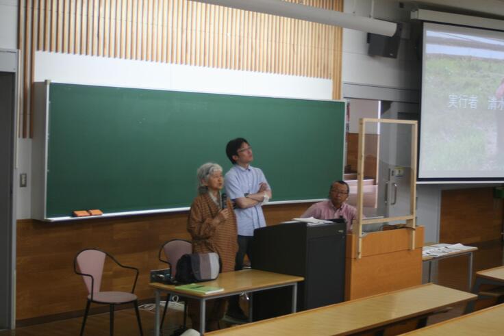 北翔大学の市原先生は我々スタッフと旧知の仲。「社会福祉」の講義の1コマに、「戦争と想像力」と題し「あゝ沖縄」プロジェクトを取上げてくれました。実行者清水藤子を先頭に三名でお邪魔し、90分間一生けん命に説明してきました。1年生約30名の学生さんはしっかり聴いてくれました。