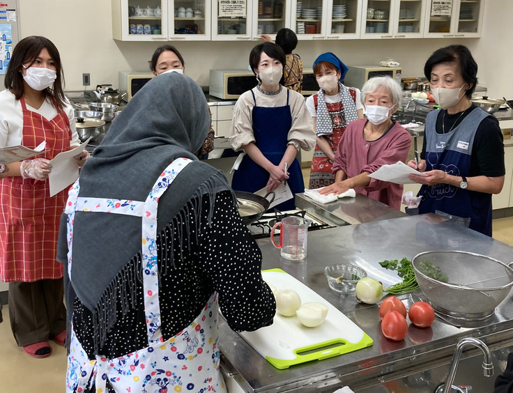 AARは、アフガニスタン難民女性支援のための「アフガニスタンのお料理教室」を10月26日(土)、千葉県野田市の南部梅郷公民館で開催しました。料理上手の難民女性を講師に、参加者10人がチキンカライ(アフガニスタン風鶏肉のトマト煮)などに挑戦しました。