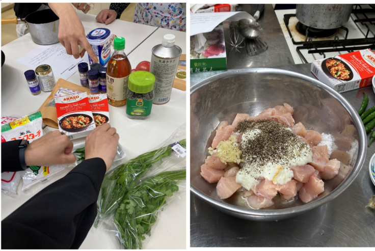 料理教室は、前回に引き続き千葉で活動するNPO法人「地球市民交流基金 アーシアン」と協力して開催しました。今回のメニューは、 アフガニスタンの家庭でよく作られるというチキンカライとデザートのフィルニ(アフガン風ミルクプリン)でした。