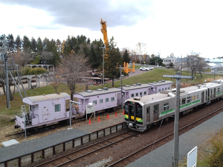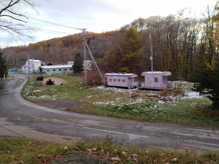 女満別のピンクの車掌車 移設から一年