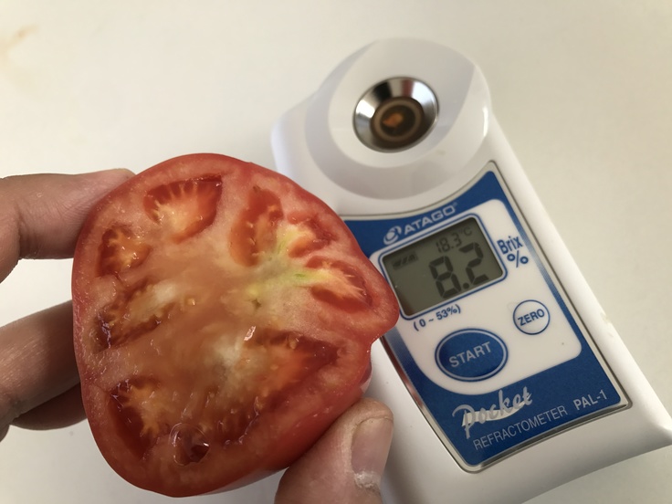 この糖度計を導入することで、今までよりもさらに精密に糖度を分けることができ、お客様に対しておいしいトマトをお届けできると考えています。