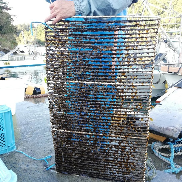このロ—プを海に設置すると、来年春は、1メ—ル以上のワカメに成長するんですよ😆