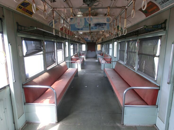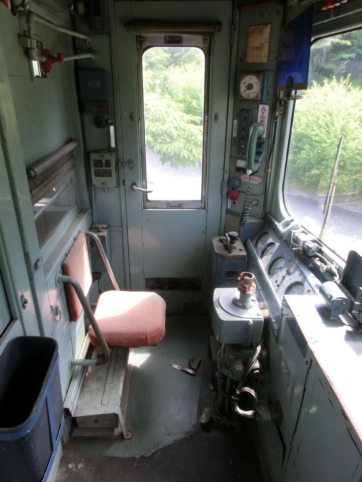 まずは窓とドアを開けて(簡単には開かないかも)積もったほこりをブロアー等で飛ばします。破れて壊れてしまっているロール式カーテンなどはとりあえず簡単に掃除をして納めます。シートに積もったほこりや汚れは時間があれば「リンサークリーナー」で洗浄します。そして、窓や床の拭き掃除、運転室は機器類に積もったほこりを拭き掃除します。