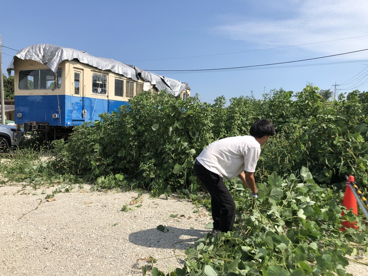 ネクストゴール達成時に2212号を搬入する予定の茨城県土浦市にある「首都圏電車区」では、すでに受け入れ用の線路敷設は完了していて、本日は敷地とその周辺の整備、草刈りなどを協力メンバーで行いました。