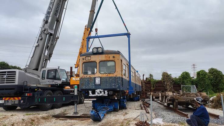 【速報】救出した2200形2両の陸送、設置が完了しました