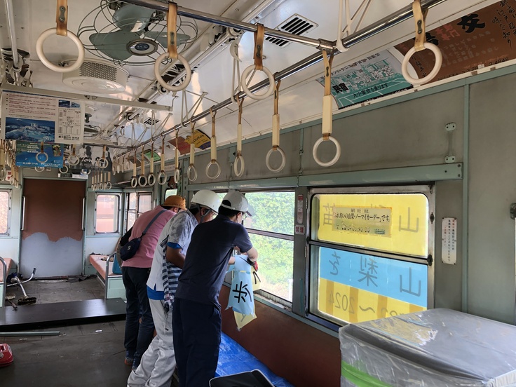 いつか青いモケットを復元したいですね!などと和気あいあいと盛り上がりつつ、作業は進みます。