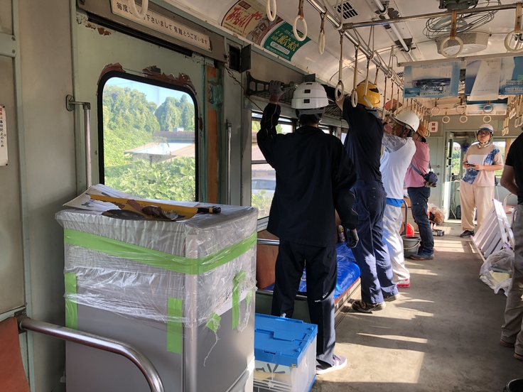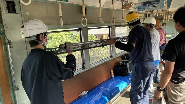 作業途中、窓が開かなくなってしまい、急遽、網棚を取り外した整備が必要となり、ご協力いただきました!
