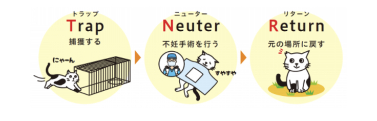 ※TNR:T(トラップ=捕獲)・N(ニューター=不妊去勢手術)・R(リターン=捕獲場所へ戻す)の一連の活動のこと